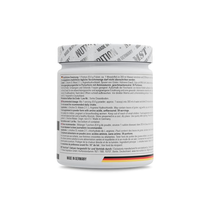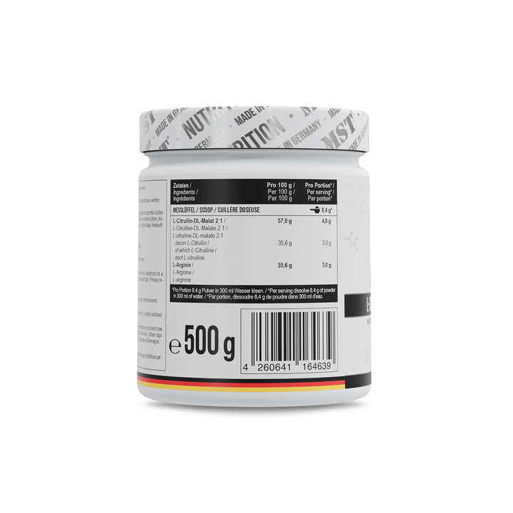 • Alta dosis de L-Arginina (3000 mg) y L-Citrulina (3000 mg)