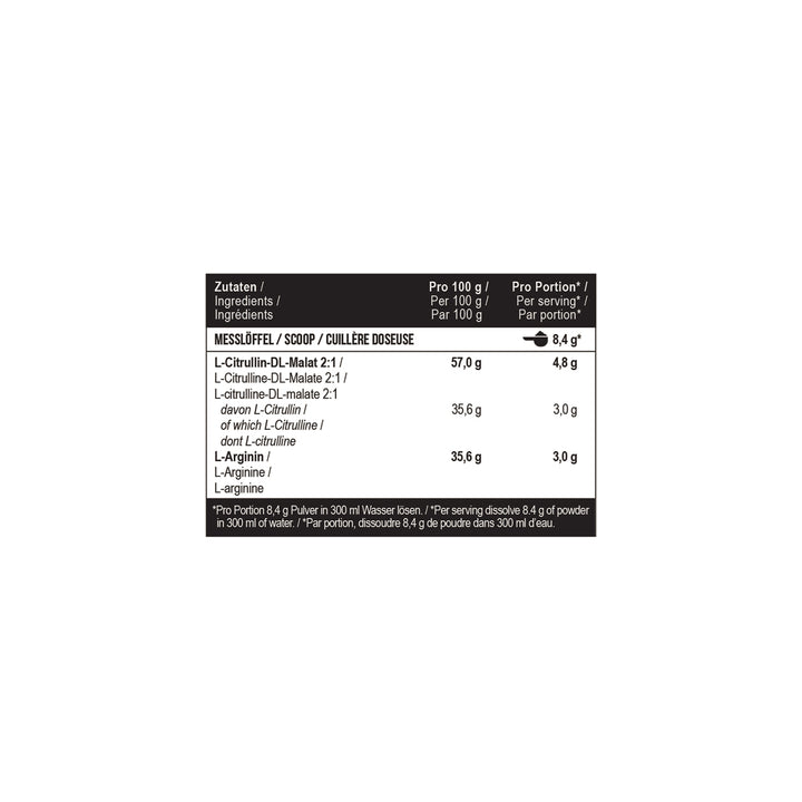 L-Arginin-Base; L-Citrullin DL-Malat 1:1; Trennmittel: Siliziumdioxid.