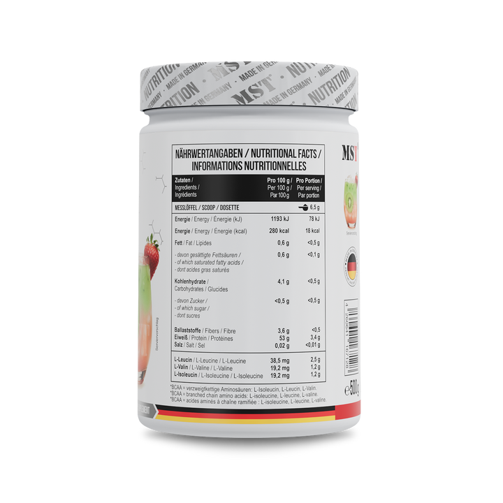 BCAA Zero von MST Nutrition liefert essentielle Aminosäuren im optimalen 2:1:1 Verhältnis aus L-Leucin, L-Isoleucin und L-Valin. Diese verzweigtkettigen Aminosäuren sind wichtige Bausteine von Proteinen, die zum Erhalt und Aufbau von Muskelmasse beitragen können – besonders bei intensiven...
